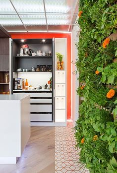 Horno, microondas y fogones (fuego), juntos. Los elementos relacionados con el agua no estarán al lado de los del fuego, ni enfrentados. Si esto no es posible por el espacio reducido o porque la distribución es en línea, podemos poner algún elemento decorativo como una madera de cortar, un jarrón o plantas.