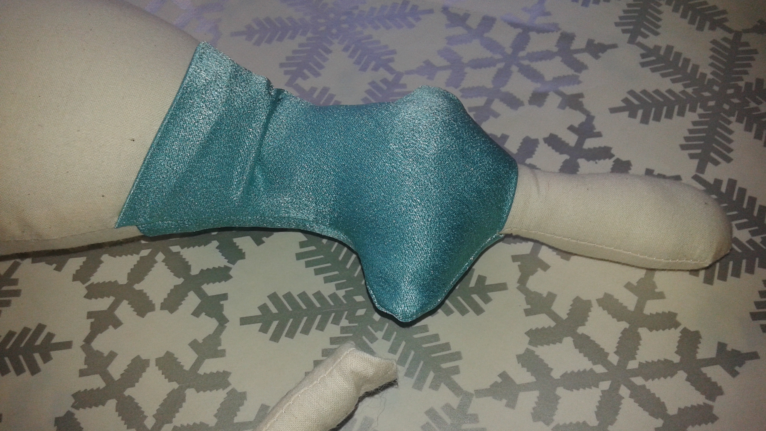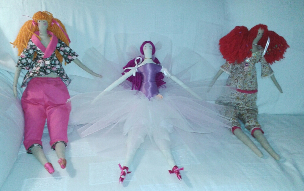 Como va a ser una bailarina, hemos hecho la parte del cuerpo con 4 telas, de manera que, una vez hecha la costura, al darle la vuelta, ya la tenemos vestida con el mallot.