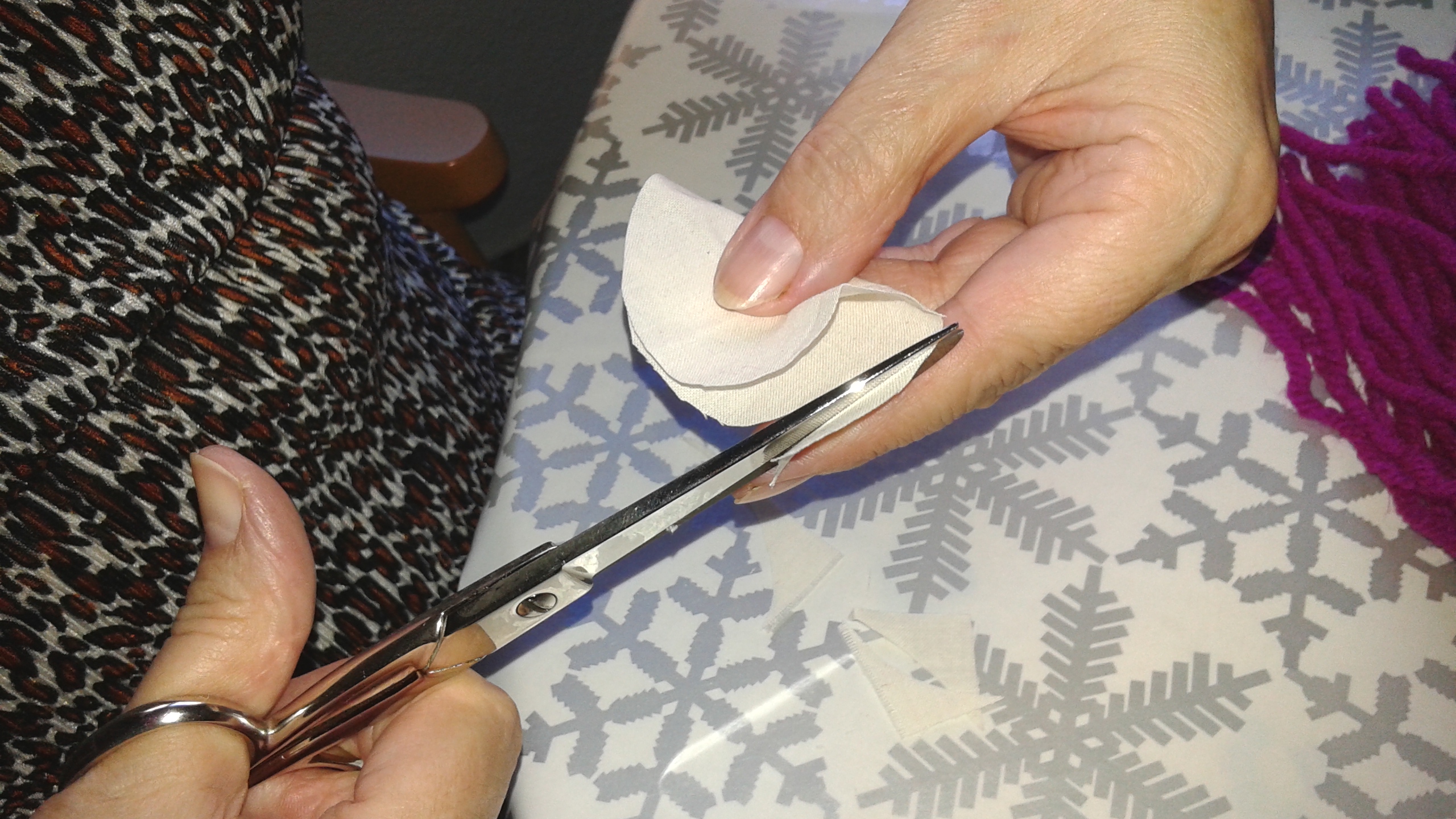 4. Ahora hay que unirla a la cabeza. Se recorta un trozo de tela ovalado del tamaño de la cabeza de la muñeca.