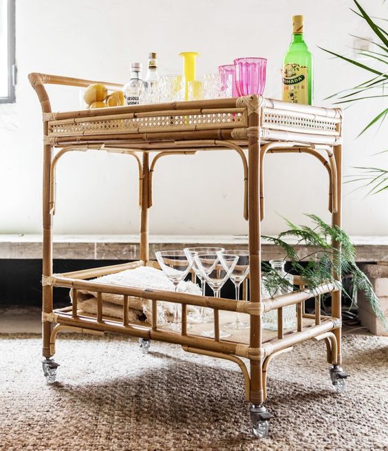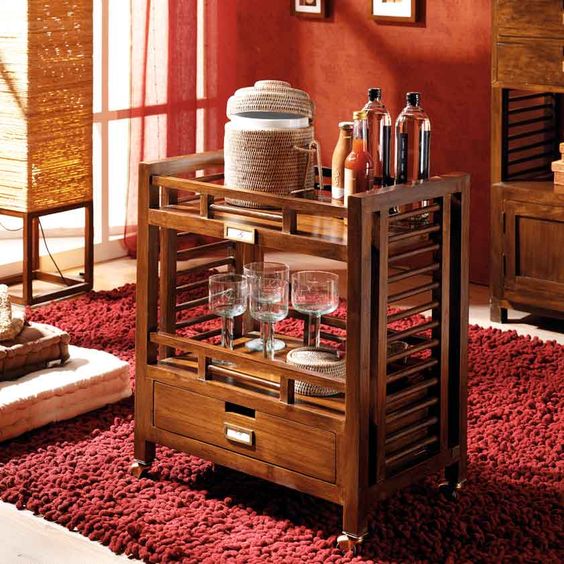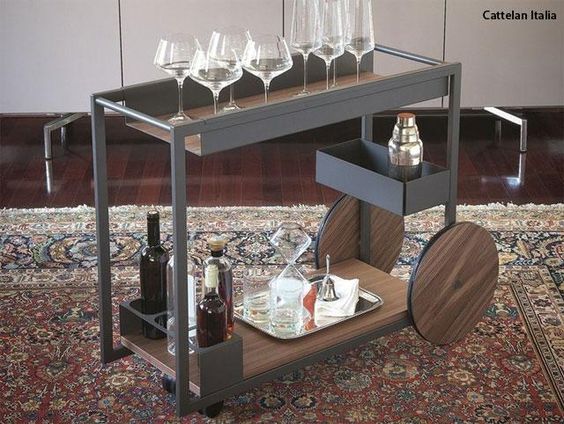 En las casas más sociales, no debería faltar un pequeño bar, siempre dispuesto para recibir a los amigos. Contar con camareras nos facilitará tener todo a mano cuando llegue la ocasión. En la cocina y en el comedor, escoge una práctica mesa camarera con ruedas. Podrás desplazarla cómodamente en función de tus necesidades. Y ganarás en almacenaje.