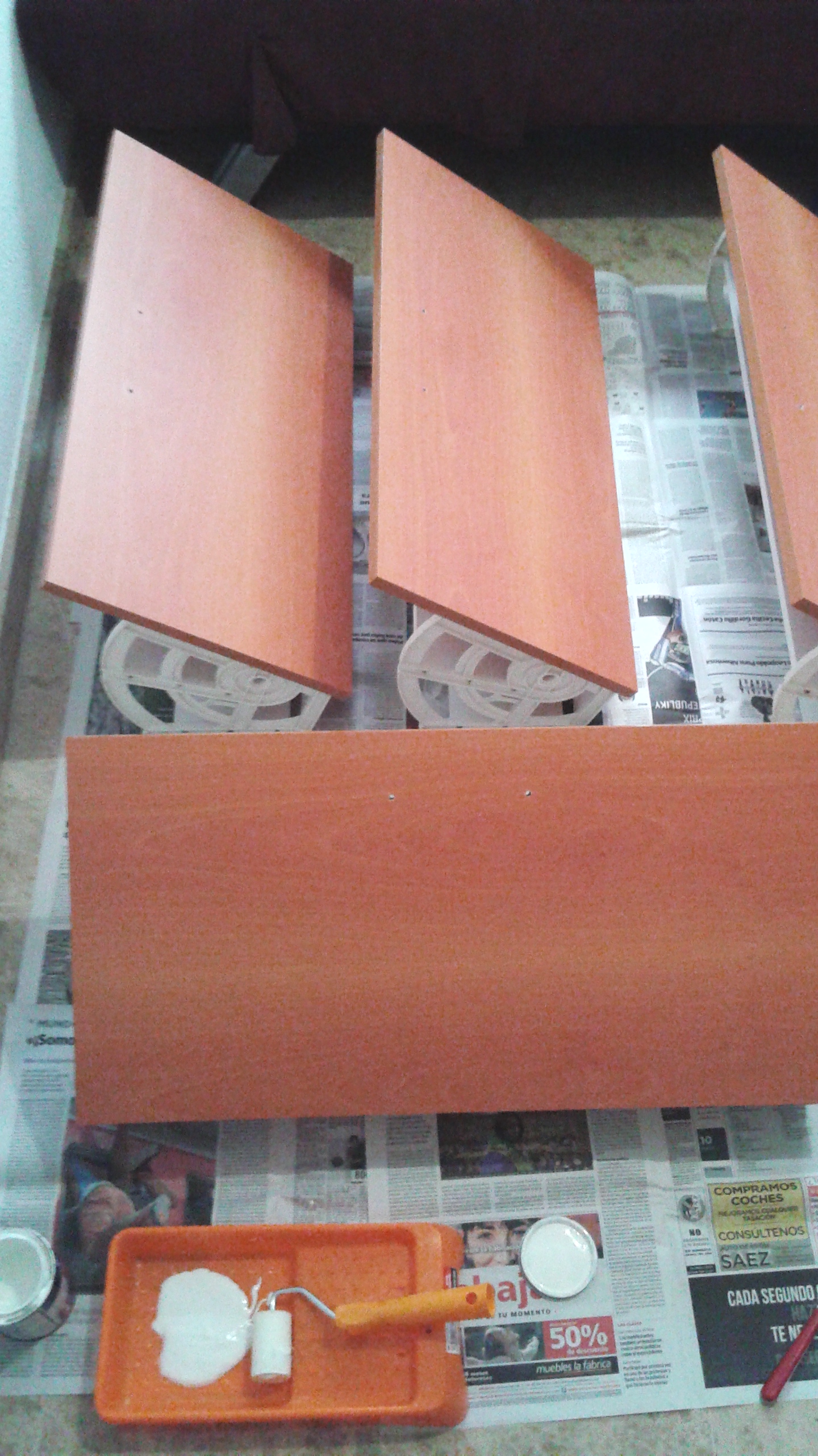 - Hablando de pintura…puse las piezas sobre periódicos y, al secarse, se quedó pegado el periódico a las piezas y en muchos casos tuve que utilizar una espátula que levantó en algunas zonas la pintura. Recomiendo poner las piezas sobre caballetes.
