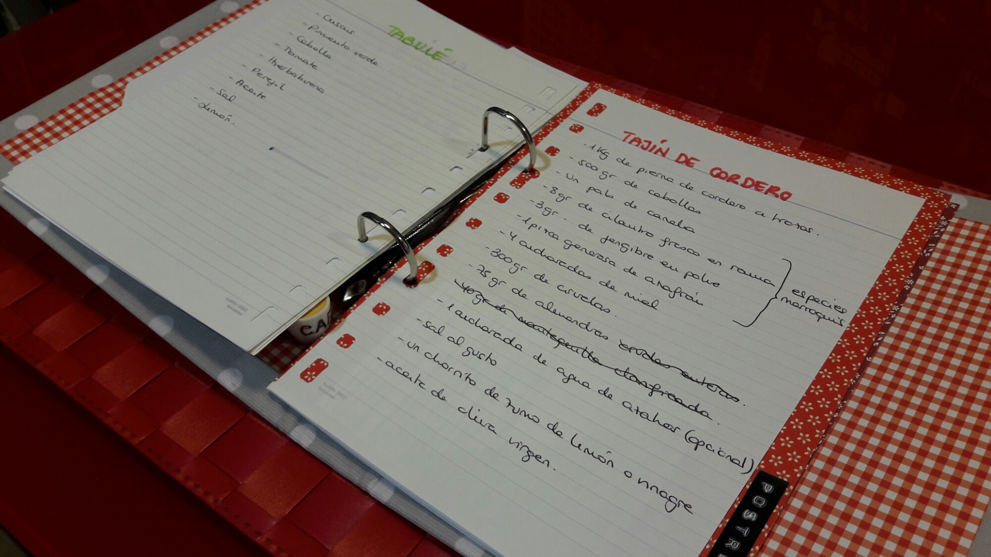Lo primero es pasar a limpio todas las recetas que tengáis, poniendo cada una de ellas en una hoja.