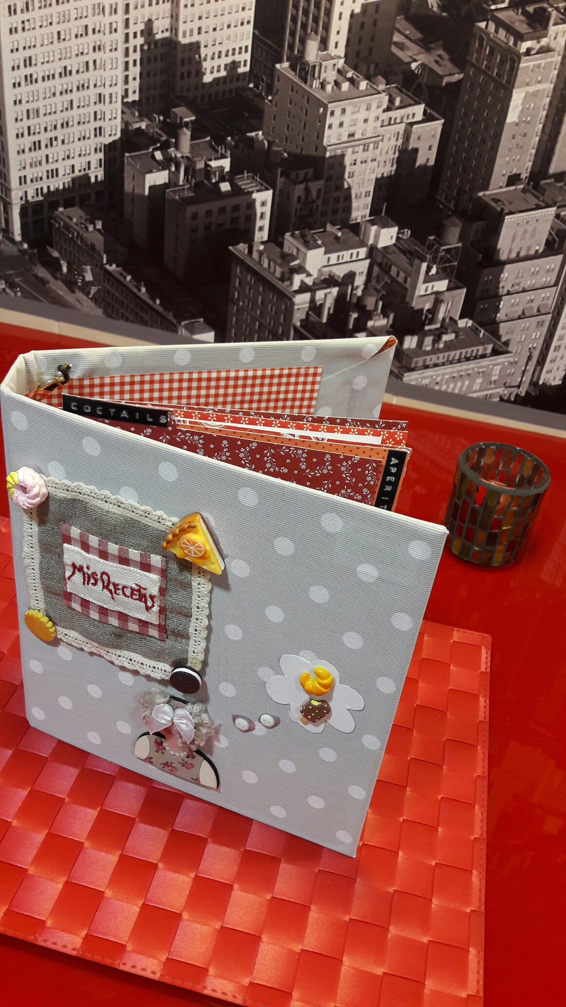 Hoy toca un DIY muy sencillo y tradicional: un recetario. La idea la cogí de la Feria creativa que se celebró en Valencia el pasado 22 de Abril y en la cual compré el kit que sirve para decorar el recetario.