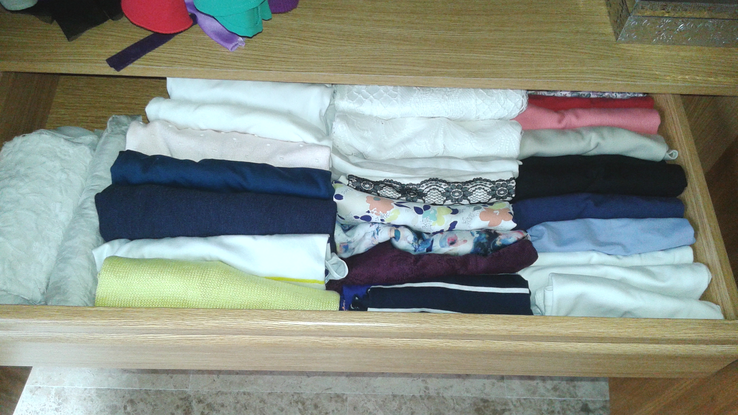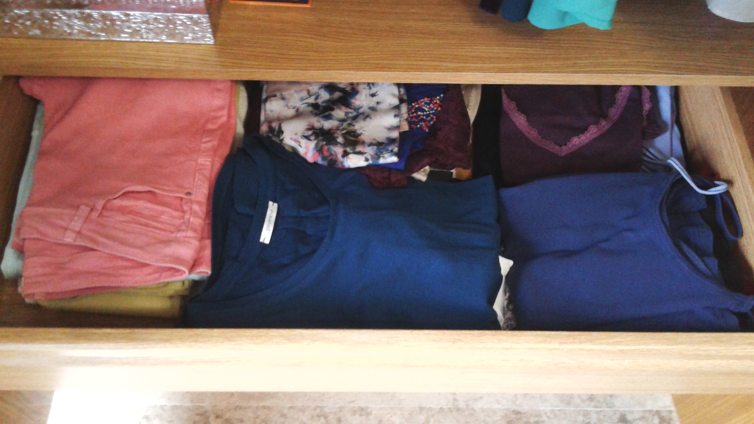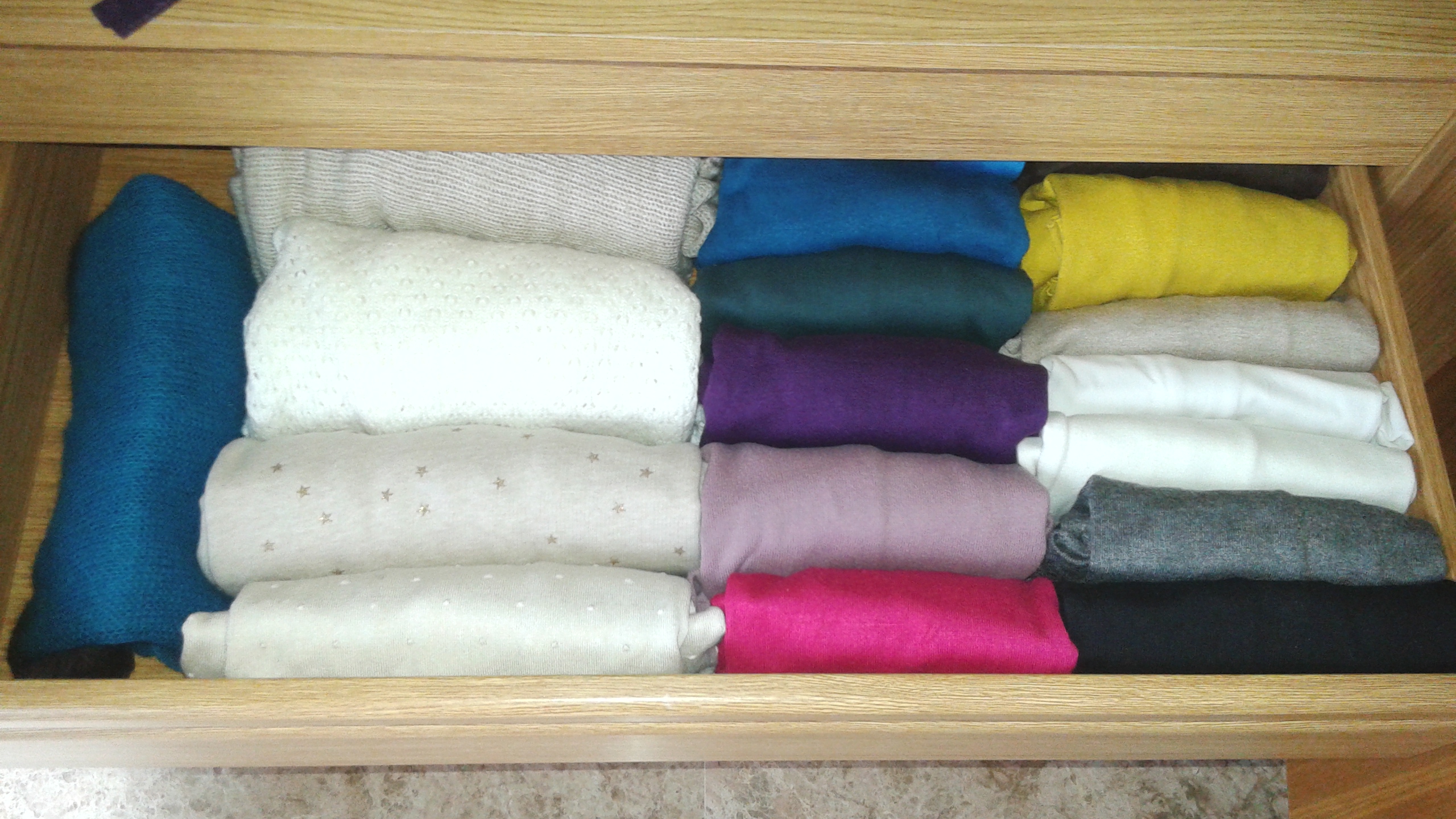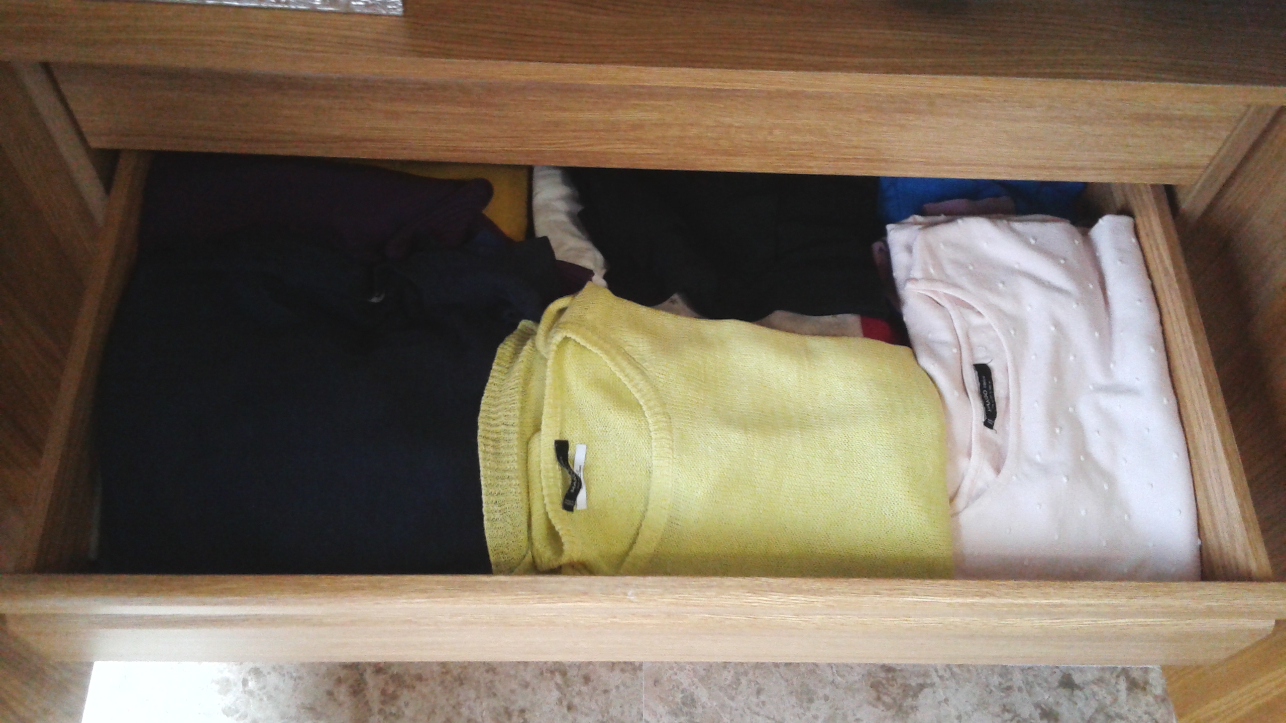 La conclusión es que sí que he aprendido a organizar mejor mi ropa y sobre todo a doblarla para que ocupe menos espacio. ¡¡He conseguido meter toda la ropa de verano y entre tiempo en un solo armario!! (las chaquetas, pañuelos, bolsos… están en otro sitio)