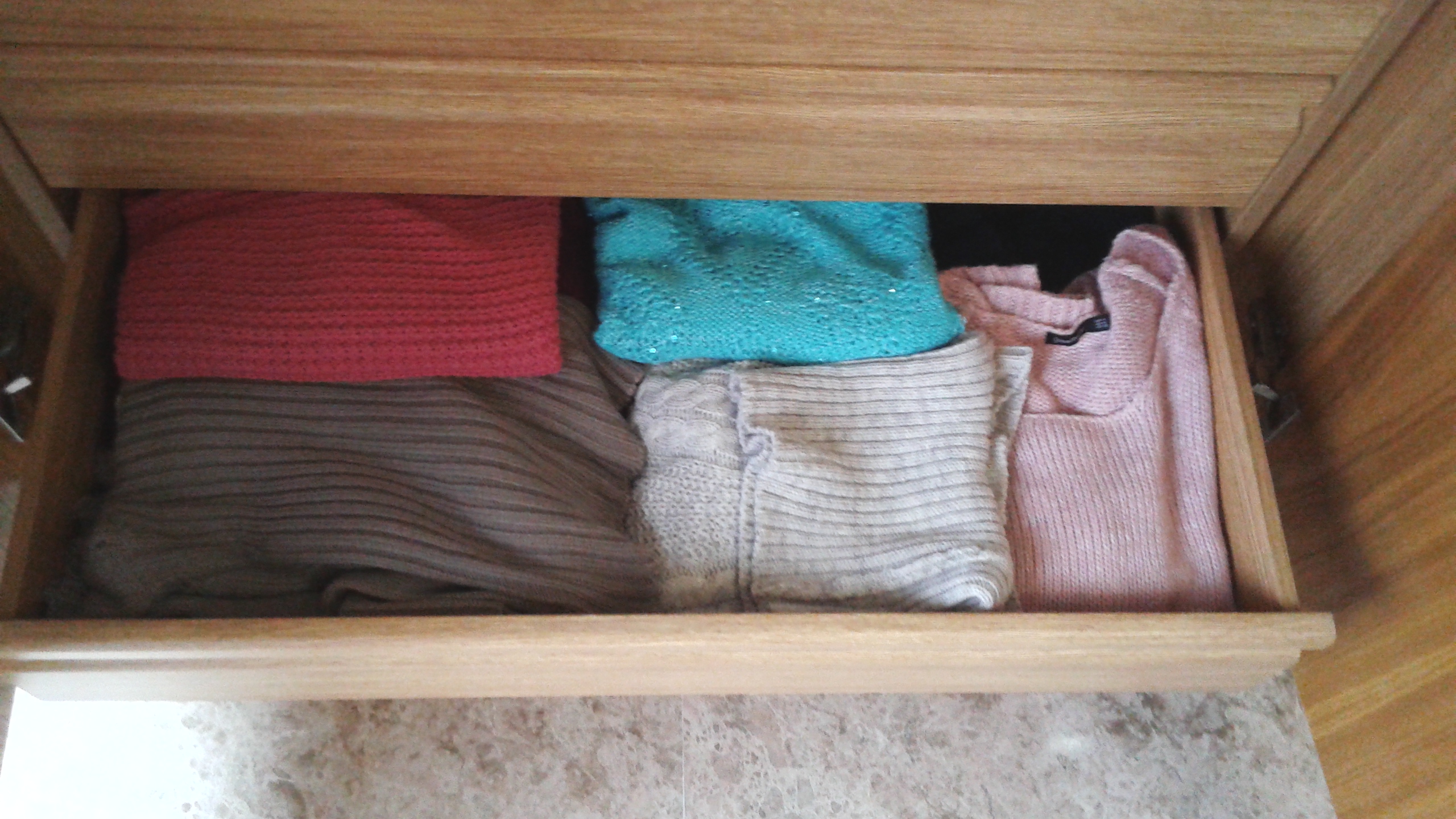 En el 2º cajón, suéters de cuello alto y un poco gorditos. Los de invierno de lana los he metido en las cajas del altillo.