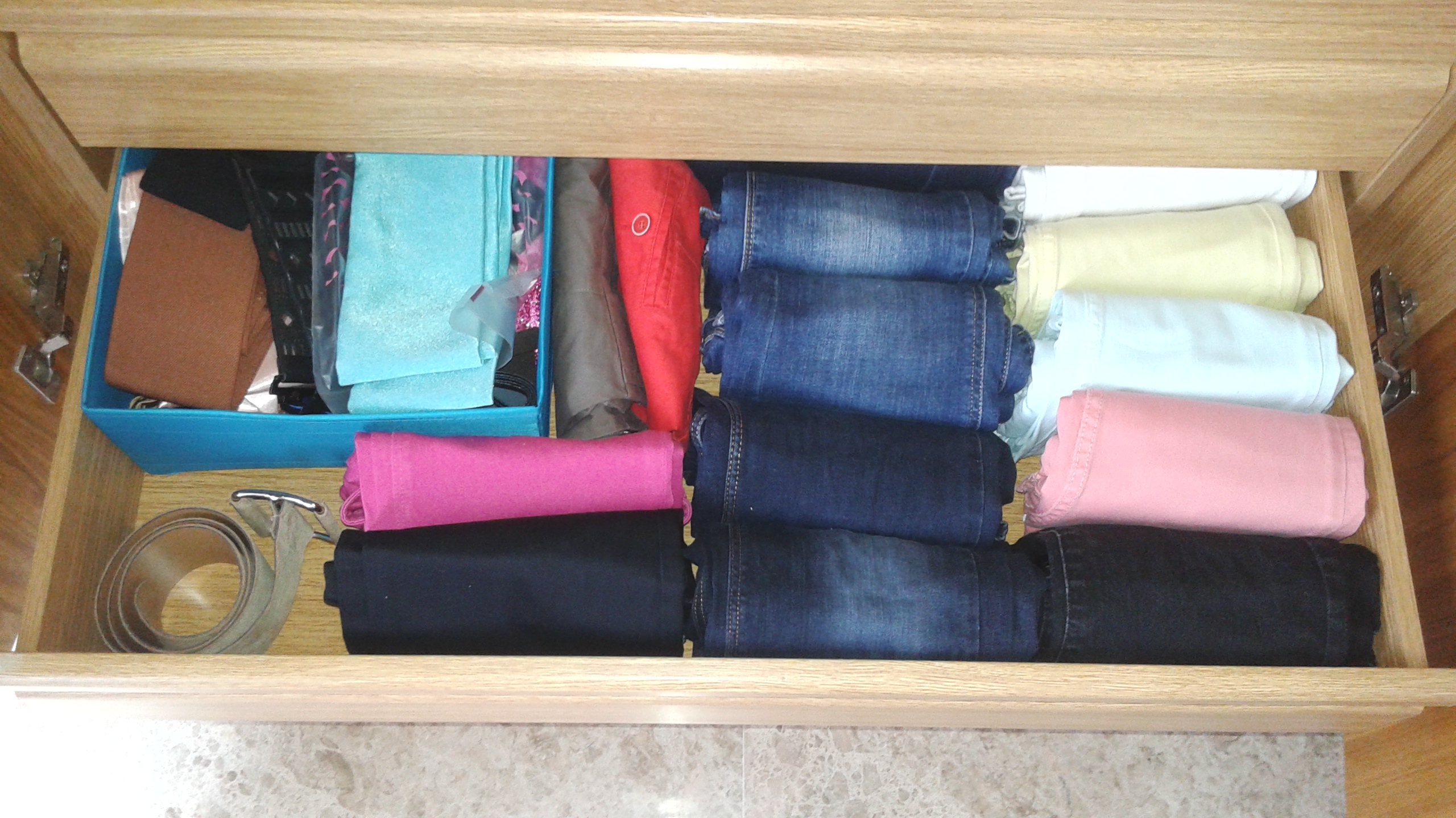 El 3er cajón ha sido para pantalones y la caja de cinturones.