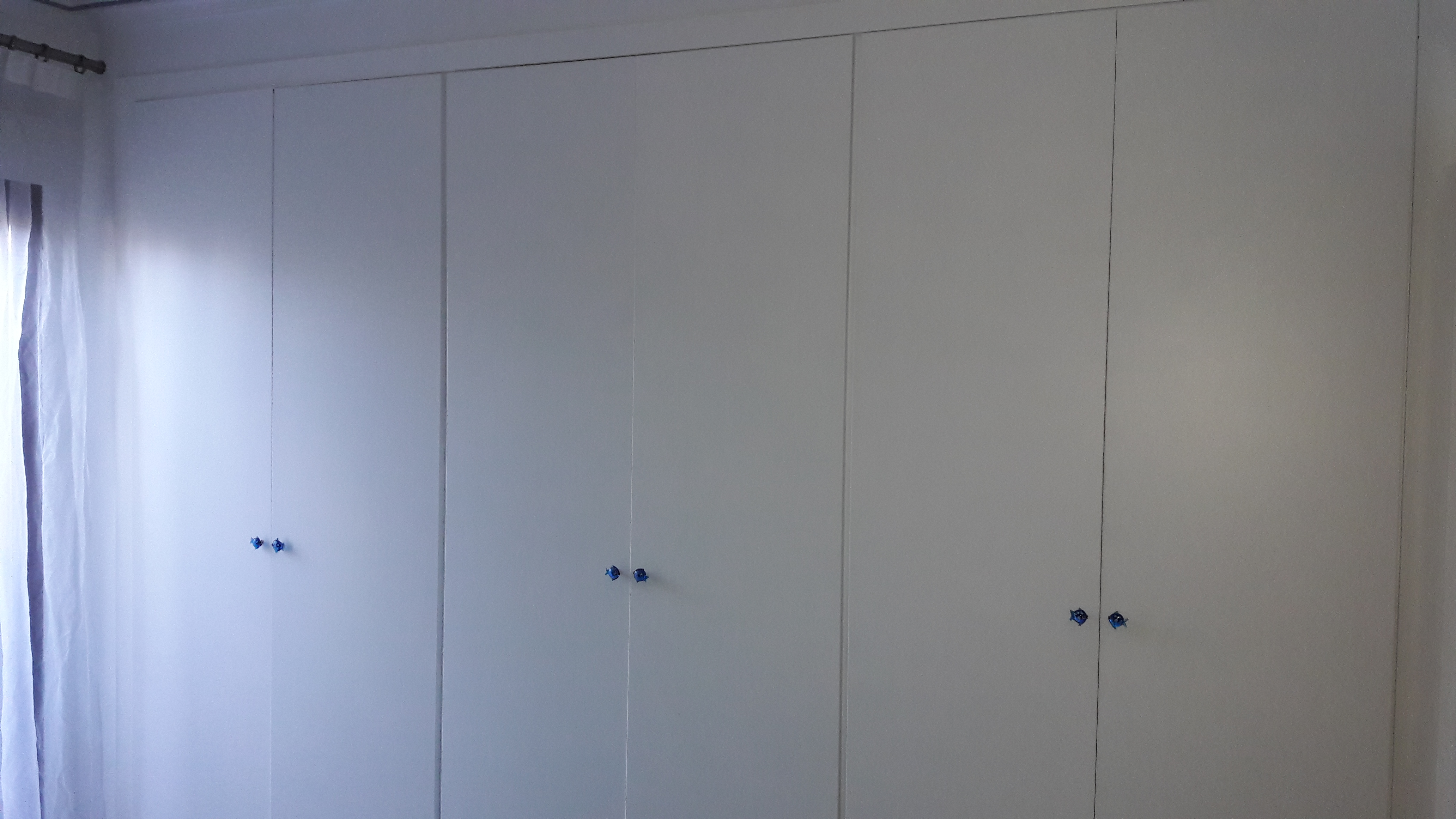 10. De paso he cambiado los tiradores y he puesto unos muy monos de pececitos de Zara Home, a juego con la pared del cabecero de la cama en color azul intenso.