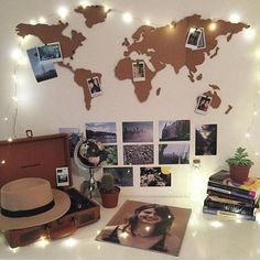 Este tiene truco, no es un DIY como tal ya que puedes conseguirlo en Misswood e ir marcando con chinchetas los lugares visitados y los futuros. Queda chulísimo si además vas pegando fotos tipo polaroid y una guirnalda de lucecitas.