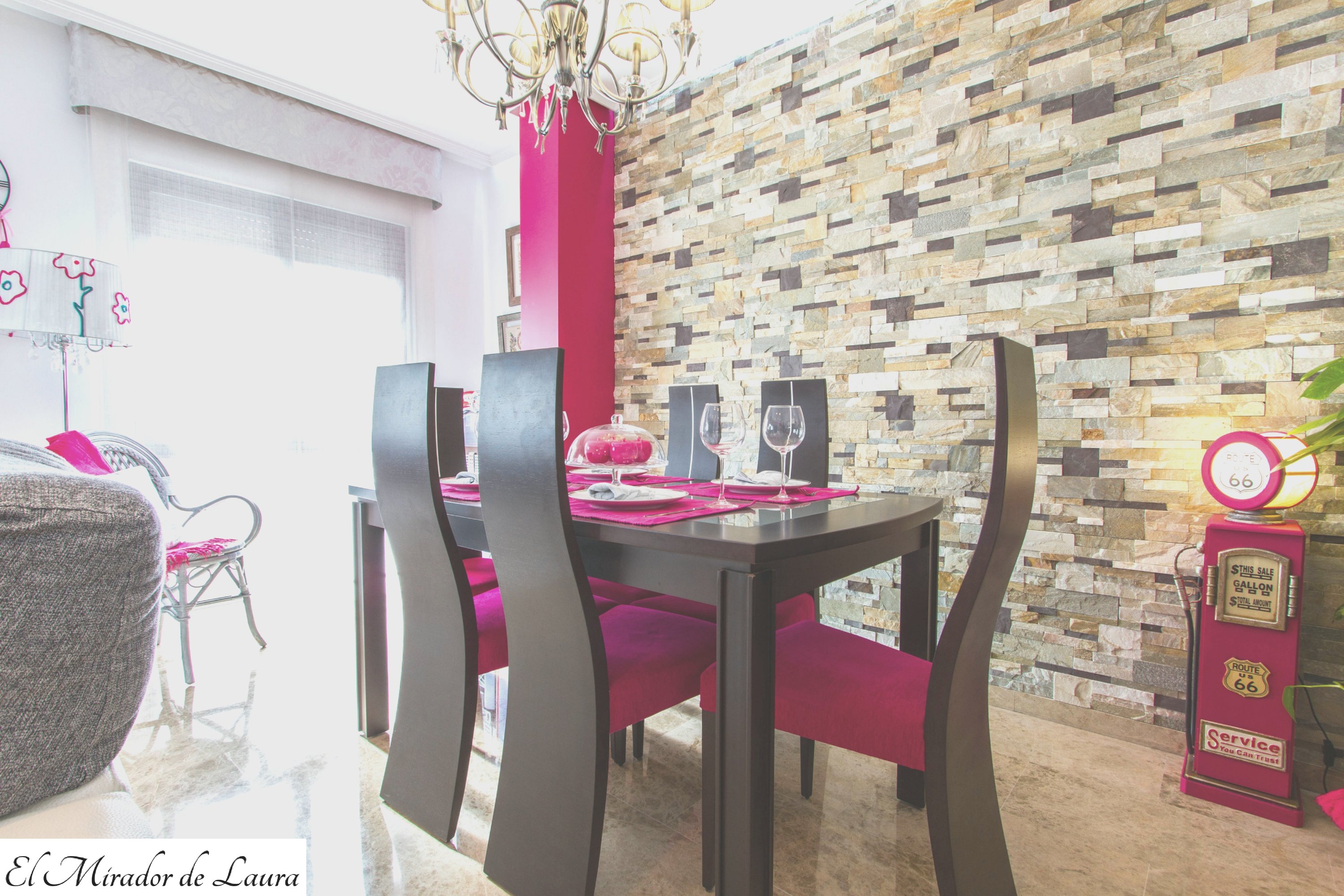Por último, hace unos meses, pinté el pilar de fucsia a gris clarito (color que conseguí de restos que tenía de otras pinturas. Y este ha sido el resultado.
