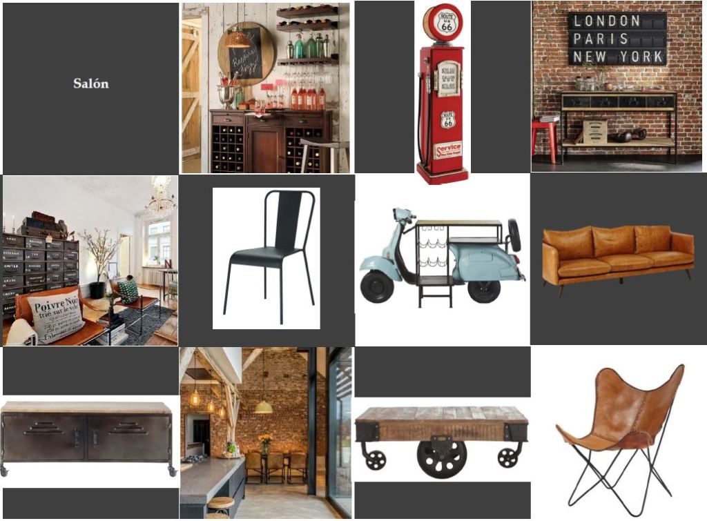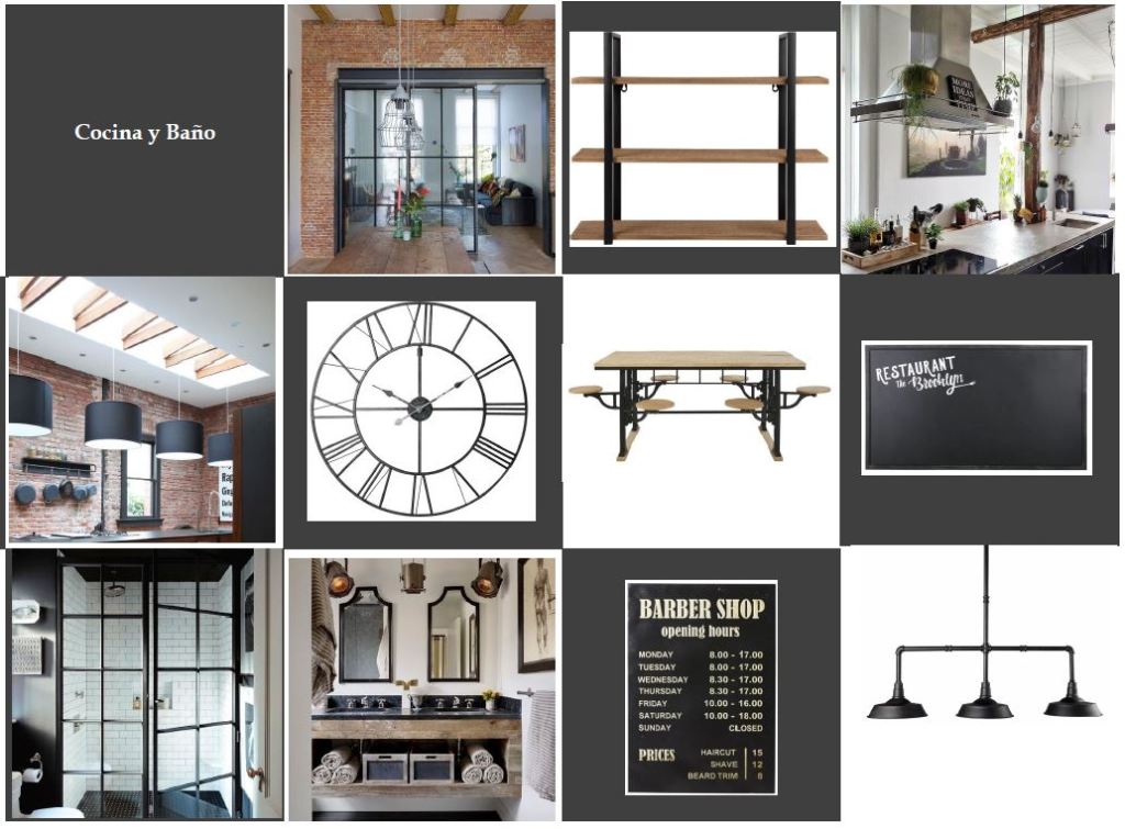 Con todas estas ideas y con el concepto industrial bien definido, he preparado unos moodboards para el supuesto de un proyecto de interiorismo en un loft del 2000, cuyo propietario es un chico de 30 años, que vive solo y necesita un espacio para teletrabajar. También quiere independizar de alguna manera la cocina, que se encuentra bajo el dormitorio, pero sin perder luz y la sensación de amplitud.