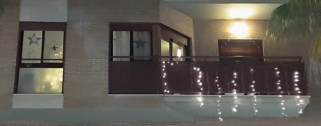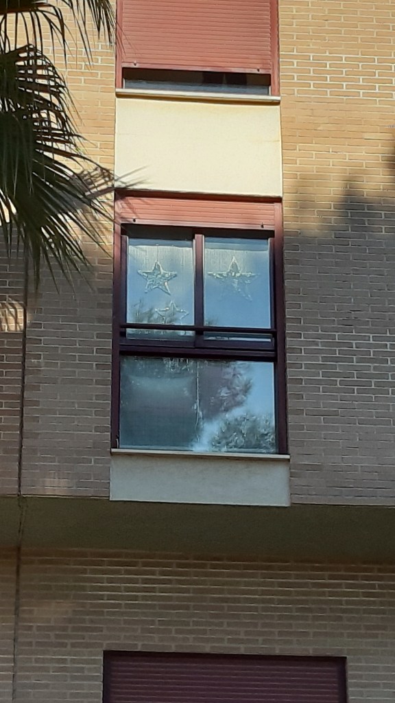 Desde la calle se pueden ver las estrellas que tengo colgadas de las ventanas (que son la decoración del escaparate que retiraron de una tienda).