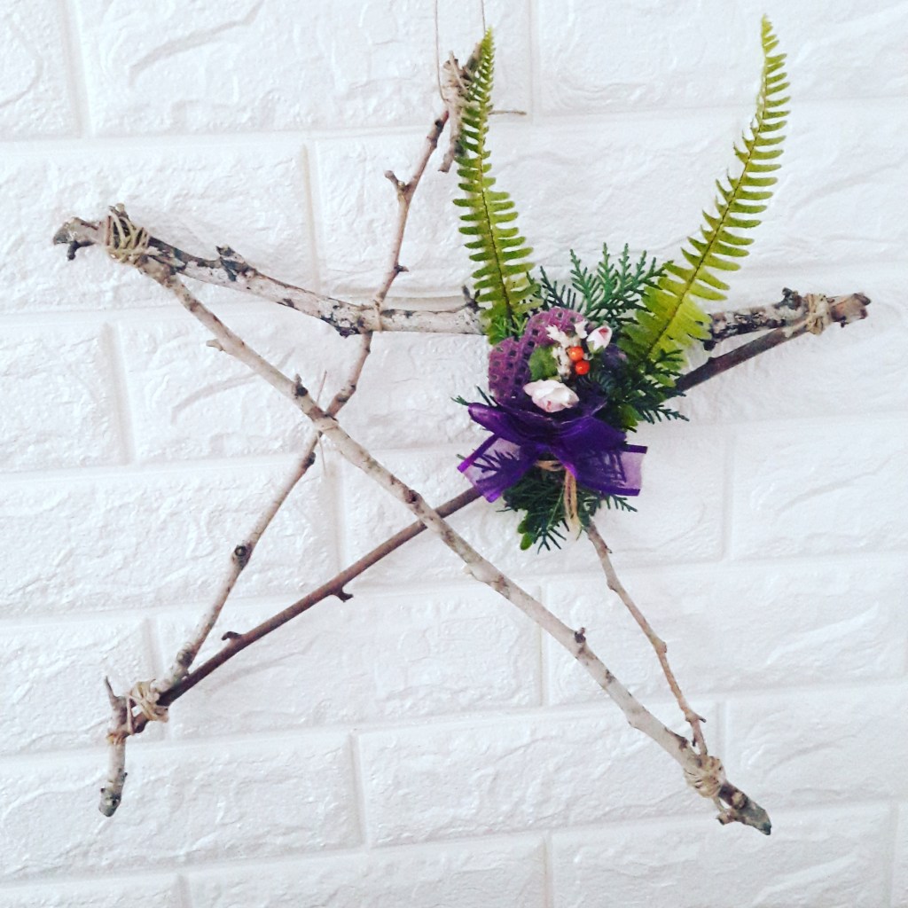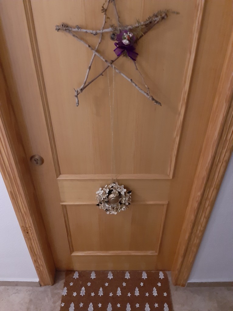 Empezamos por la entrada, en la que destaco la estrella que hice con unas ramas del campo: