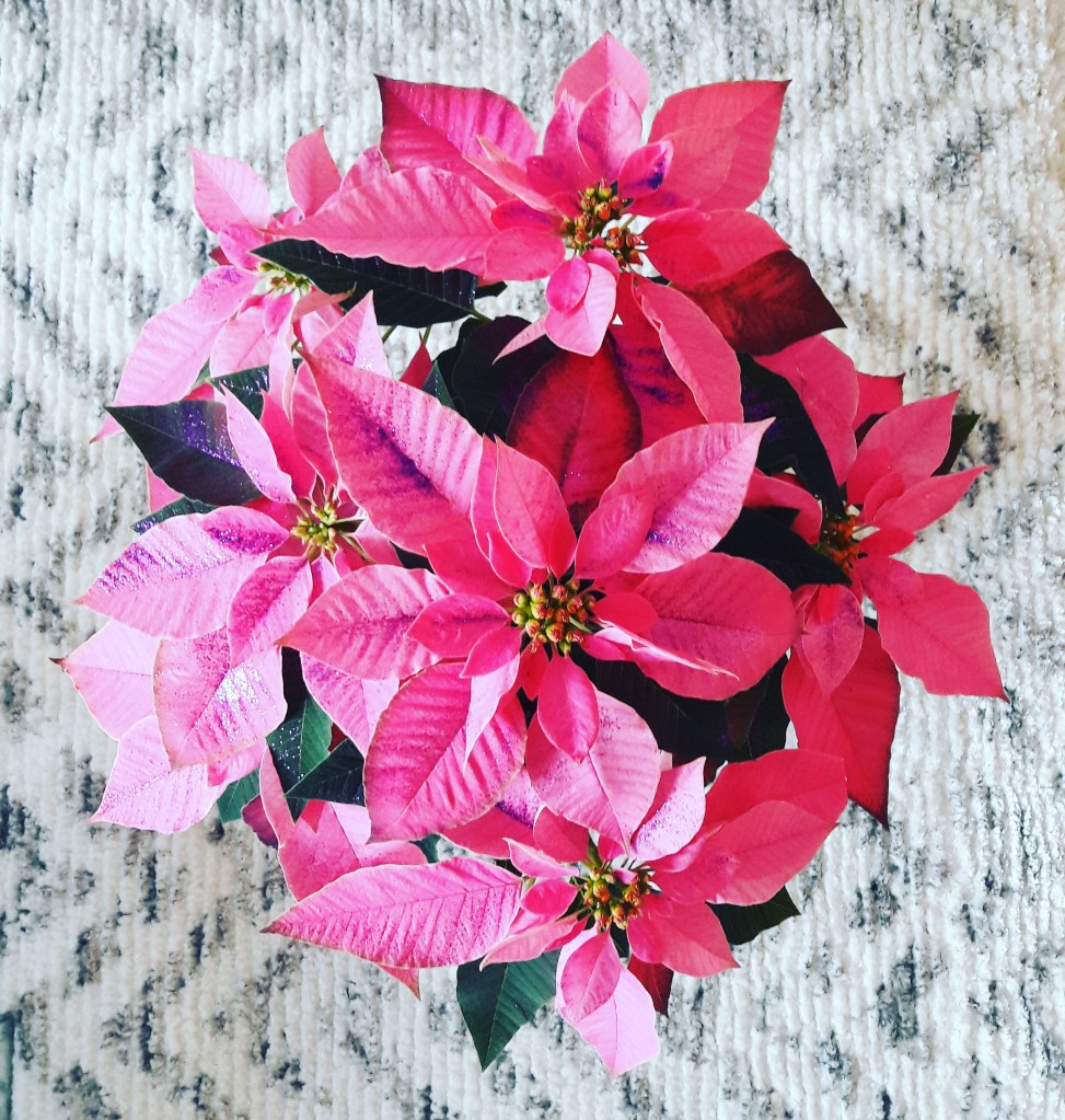 Flor de pascua fucsia (con el truco de echarle purpurina para que brille)