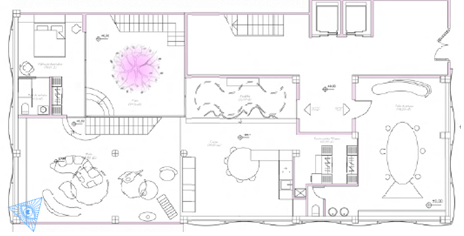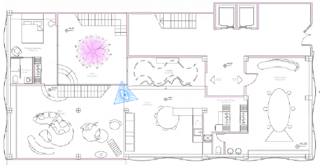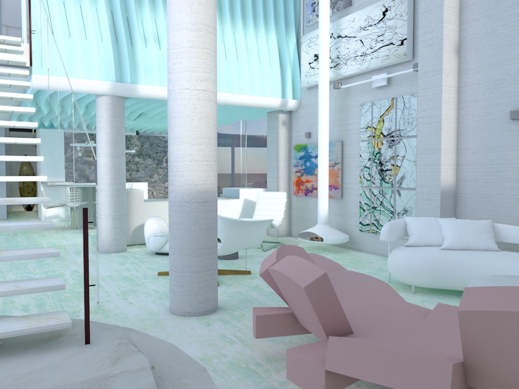 Se va a instalar una piscina en la planta primera con el vaso trasparente, que se introduce en el techo del salón de la planta baja. El efecto será como cuando las gotas de lluvia se cruzan con el sol, produciéndose el arcoíris.