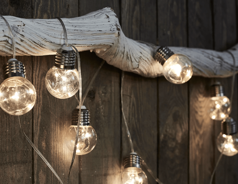 Además, si quieres vestir de fiesta un exterior mini, nada mejor que decorar con una bonita guirnalda de luces. Crearán un ambiente festivo, sin ocupar espacio y para exterior las tienes solares.