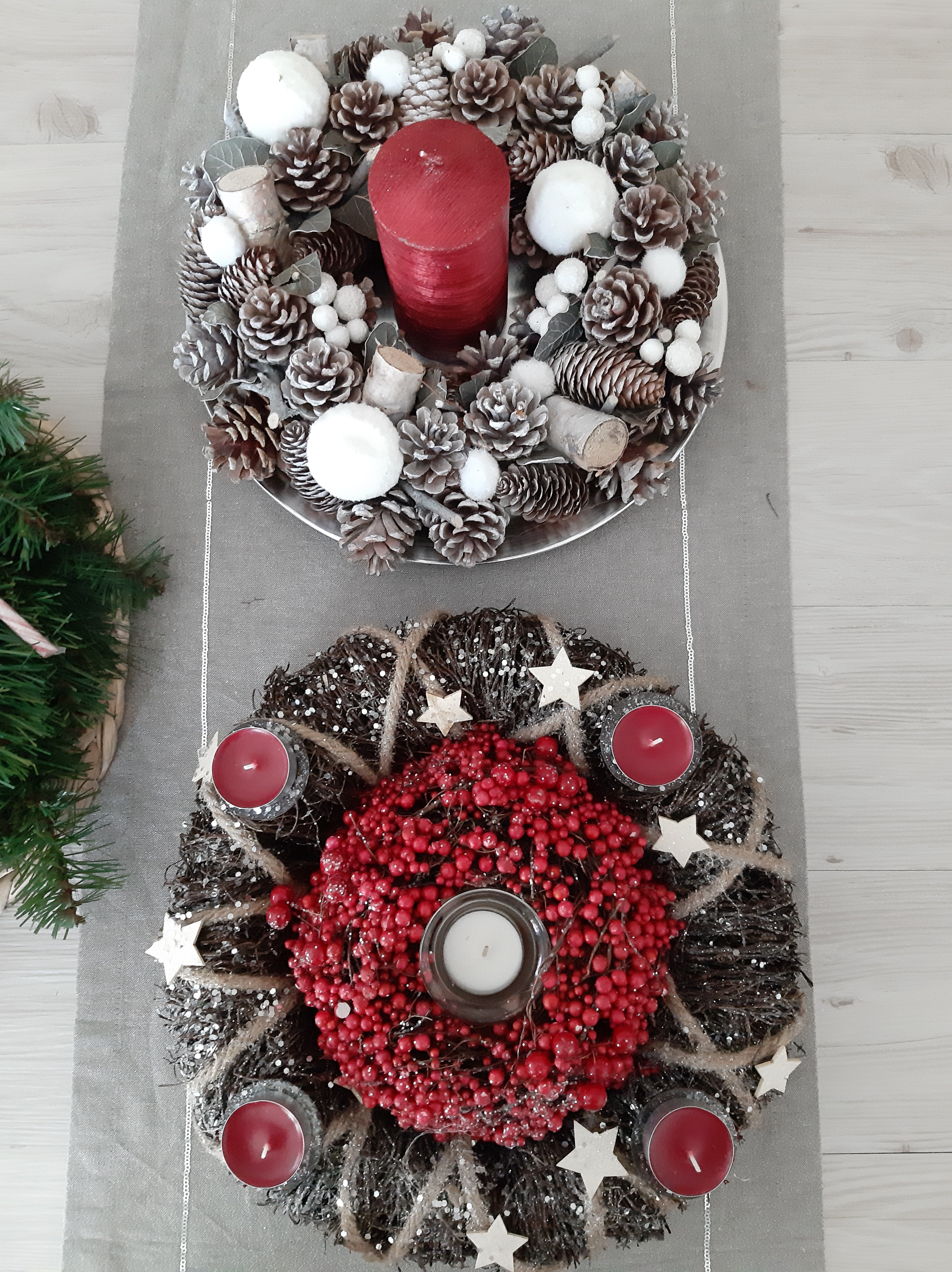 Guirnaldas botánicas en chimeneas, barandillas o como centro de mesa… coronas en sillas y, como no, en la puerta de entrada. Las hay artificiales muy conseguidas o incluso DIY (este año me he apuntado a un taller para hacer una corona navideña y cuando terminen las navidades la secaré para las siguientes).