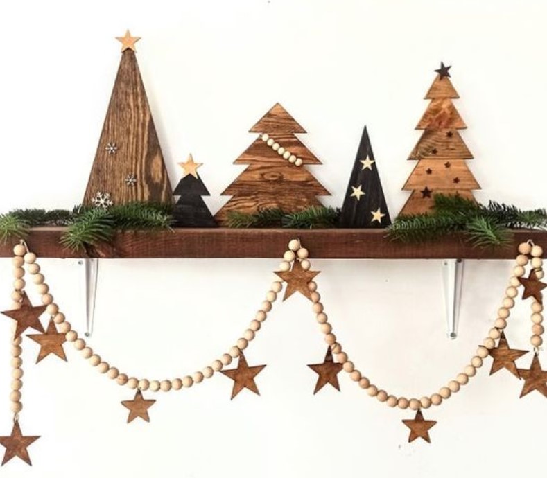 Fibras naturales, madera y arbolitos en poblados navideños.