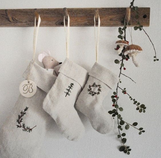 Para cada uno de los habitantes de la casa. No hace falta tener chimenea para colgarlos, pueden estar en una barandilla, un perchero, o incluso en un cordel a lo largo de un espejo.
