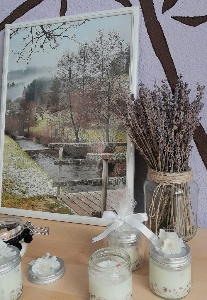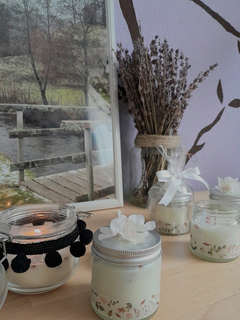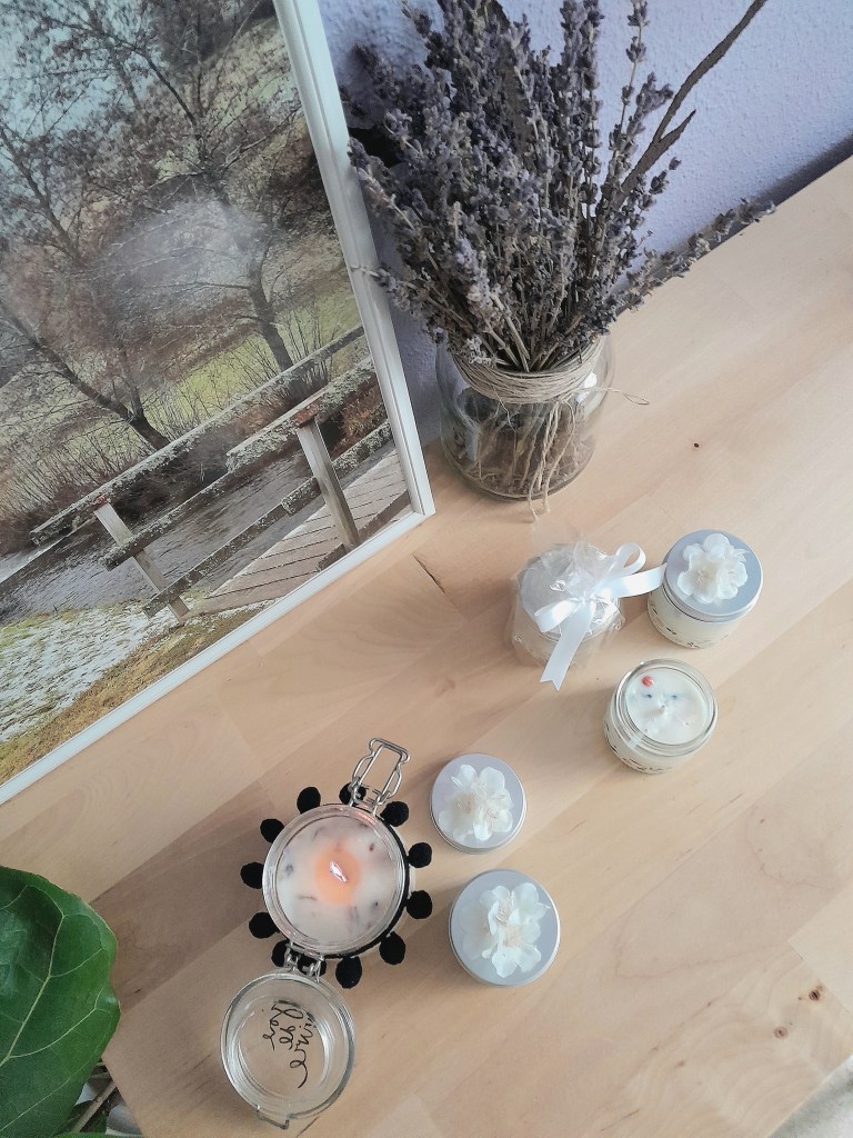 Las velas de soja son de origen vegetal, 100% naturales y no emiten tóxicos al aire. Además, se pueden pigmentar para hacerlas de distintos colores e incluso introducir florecillas secas en ellas.