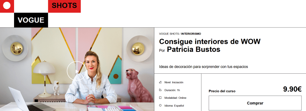 Tienen un montón de cursos online de diseño de interiores para amantes de la decoración. Estoy haciendo el de Home staging, Iniciación al Feng Shui y Orden y organización de armarios, y me están encantando.