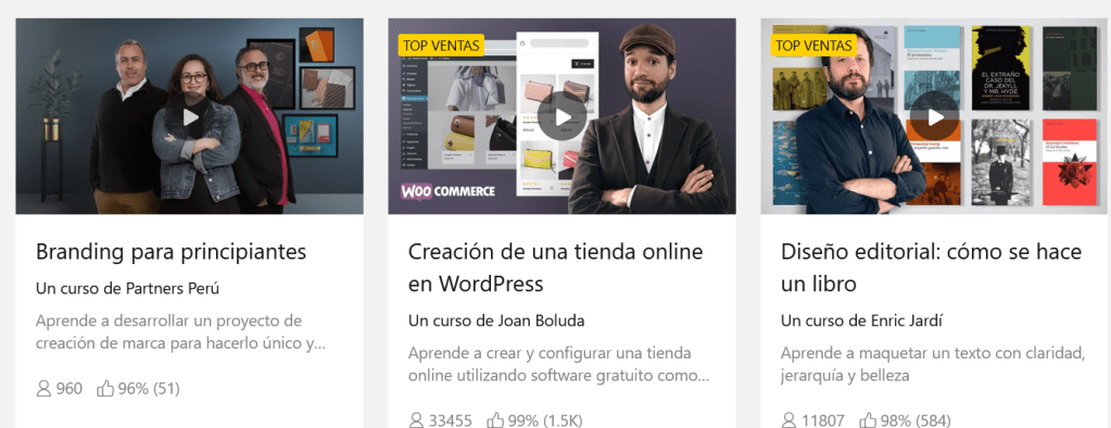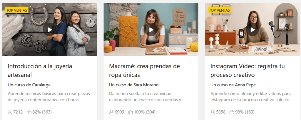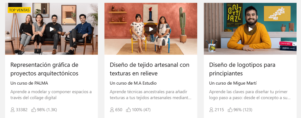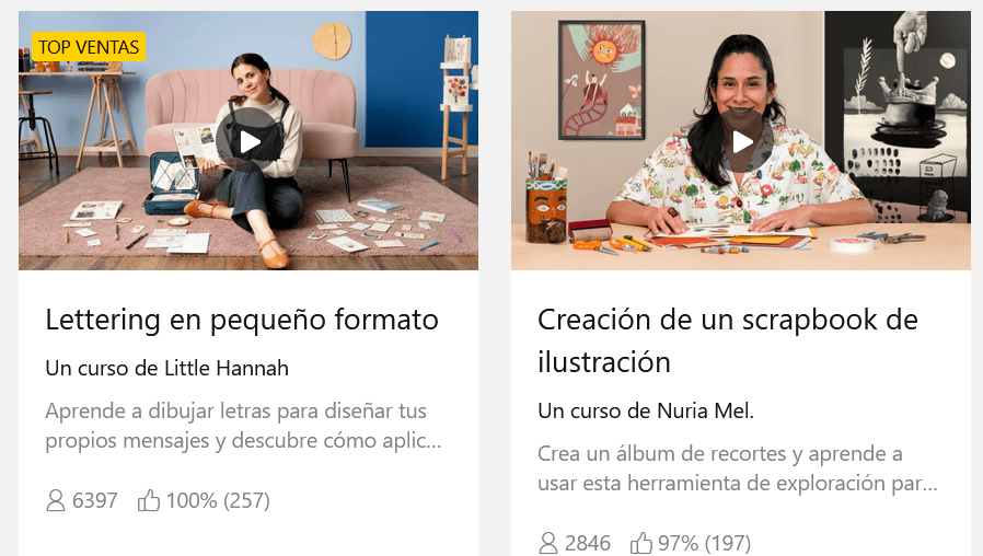 Se trata de una plataforma donde puedes realizar cursos online de ilustración, crafts, marketing y negocios, fotografía y video, diseño, 3D y animación, arquitectura y espacios, escritura, diseño web y app, caligrafía y tipografía, música y audio, y moda.